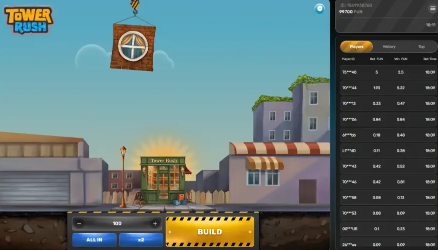 - Runde starten. Öffnen Sie das Spiel und errichten Sie Ihren eigenen Turm.